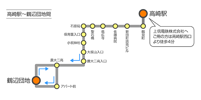 > 高崎駅西口~農大二高~鶴辺団地(R6.4.1ダイヤ改正)